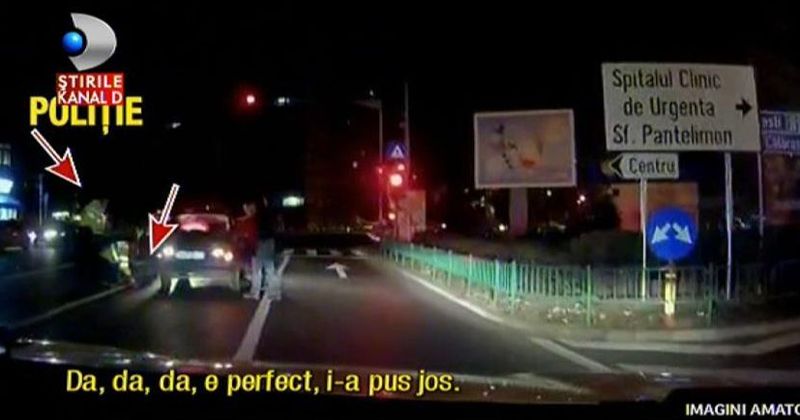 Persoana din dreapta este, insa, trasa inapoi si masina se pune din nou in miscare.