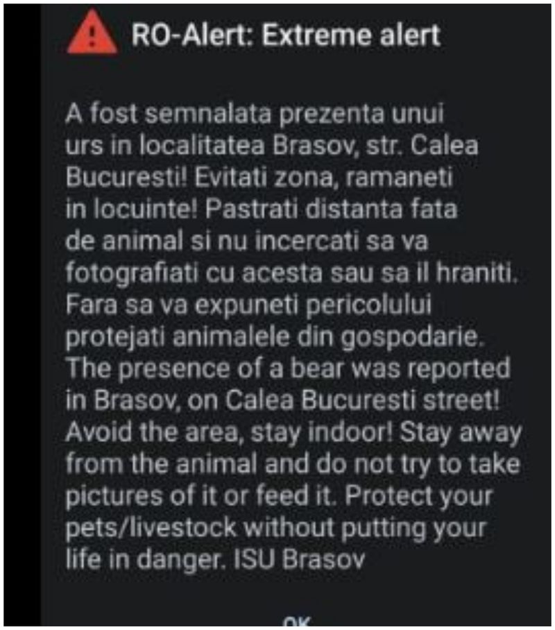 Inspectoratul pentru Situaţii de Urgenţă Braşov a trimis, de asemenea, un mesaj Ro-Alert, sfătuind localnicii să nu se apropie de respectivul perimetru. Totul este monitorizat pentru a se putea interveni rapi în situaţii de urgenţă.