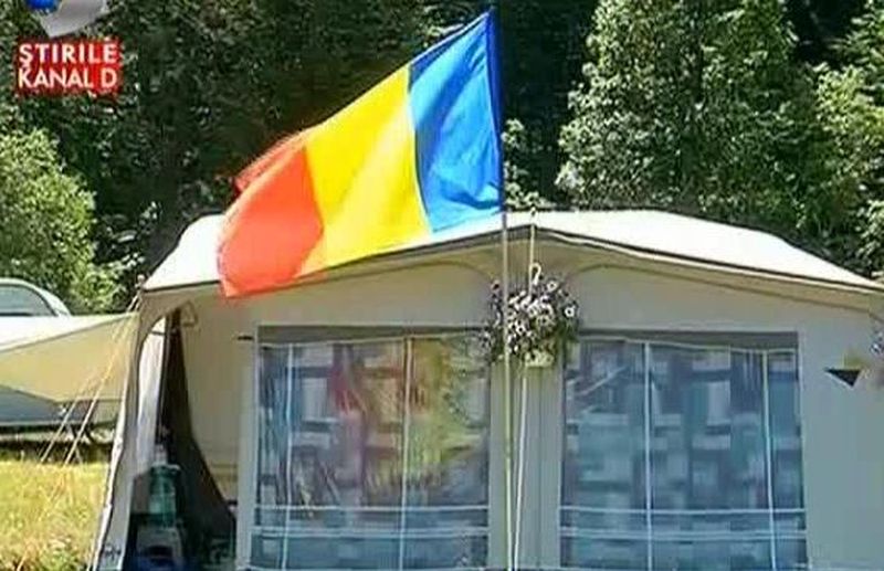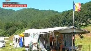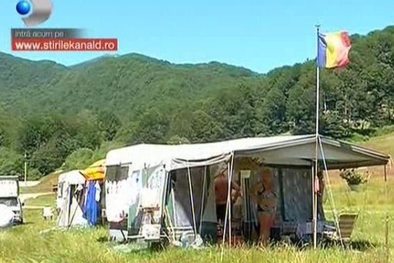 La bustul gol, in cort si cu tuica in fata. Asa fug de canicula din orase rulotistii de la Cheia.