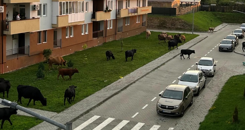 Un cartier rezidențial din Sibiu a fost invadat de vaci