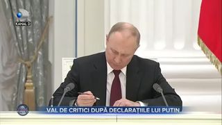 Stirea "Val de critici după declarațiile lui Putin" difuzata in cadrul Stirilor KANAL D din 22 02 2022