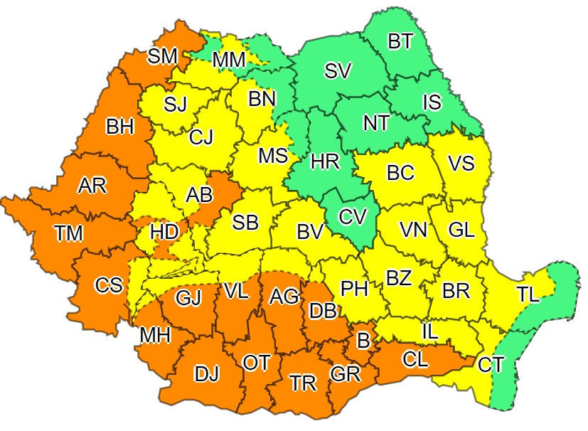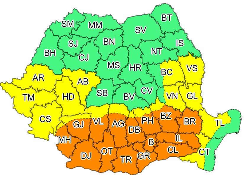 ACTUALIZARE- AVERTIZARE METEOROLOGICĂ