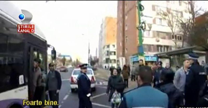 Cu totii se dau jos din troleibuz, in mijlocul politistilor, unde continua circul.