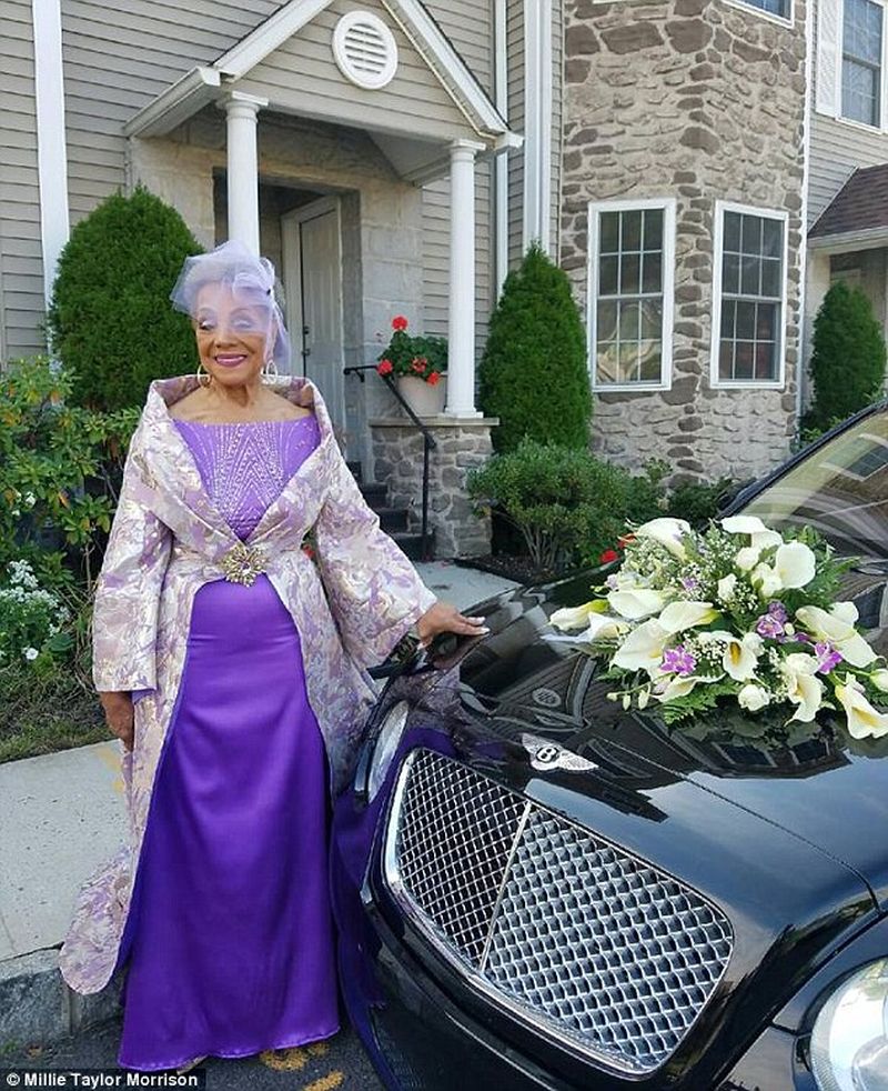 Fotografiile cu Millie in rochie de mireasa au fost puse pe Facebook de catre nepoata sa si au strans pana acum 97.000 de like-uri. Femeia, care a lucrat ca model in trecut pentru agentia de modelling Belle Mead din New Jersey, a mai fost casatorita in trecut timp de 41 de ani.