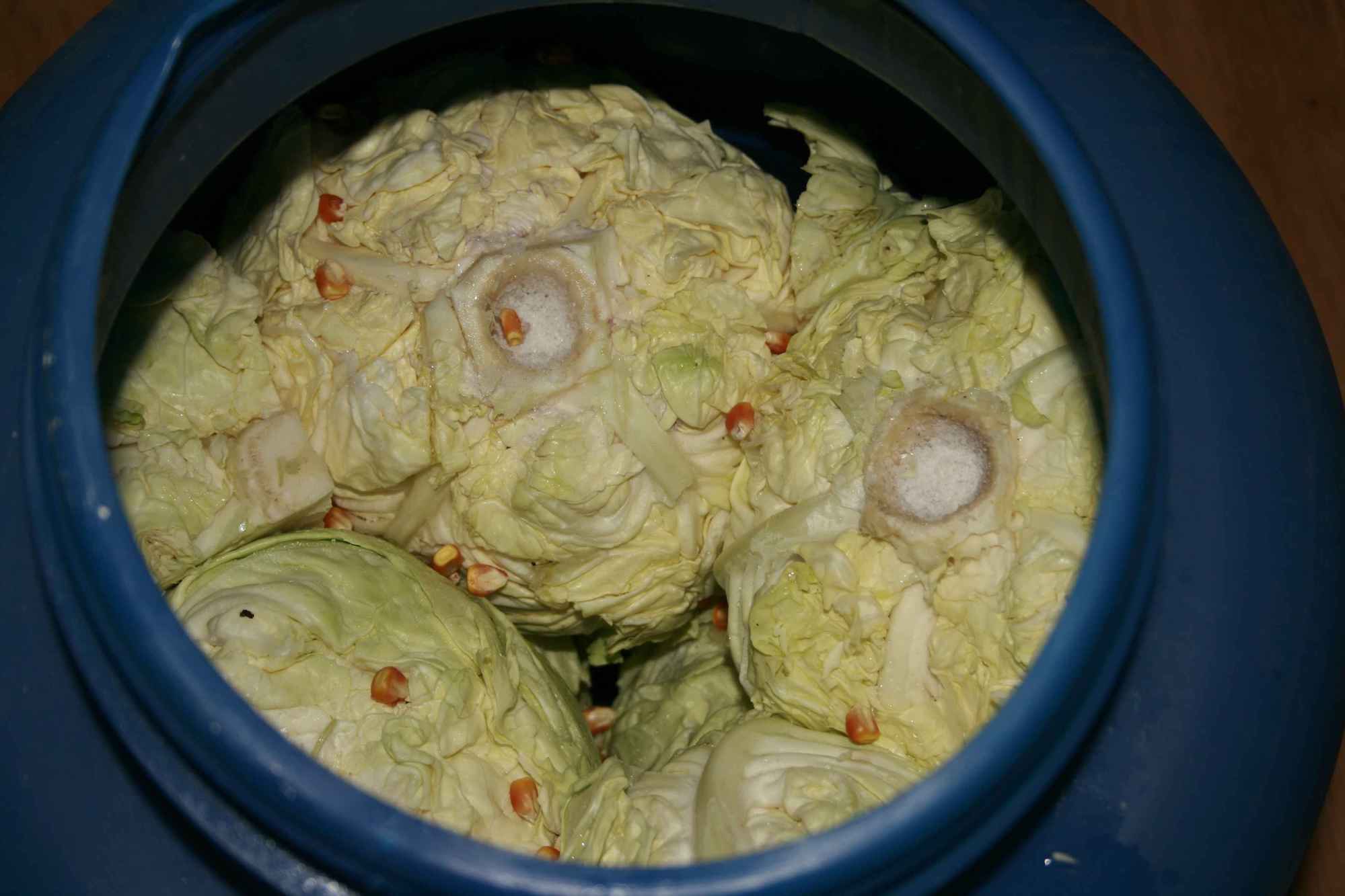 Varza se lasă aproximativ 15 zile afară, că să o atingă bruma și să se frăgezească.
