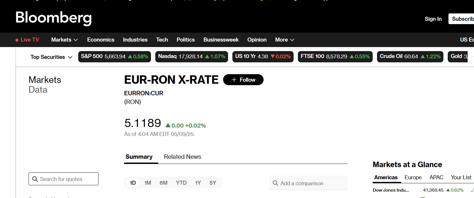 Potrivit Bloomberg, cursul valutar se află la valoarea de 5,1189 lei/euro, sub cotația oficială de ieri de 5,1222 lei/euro.