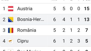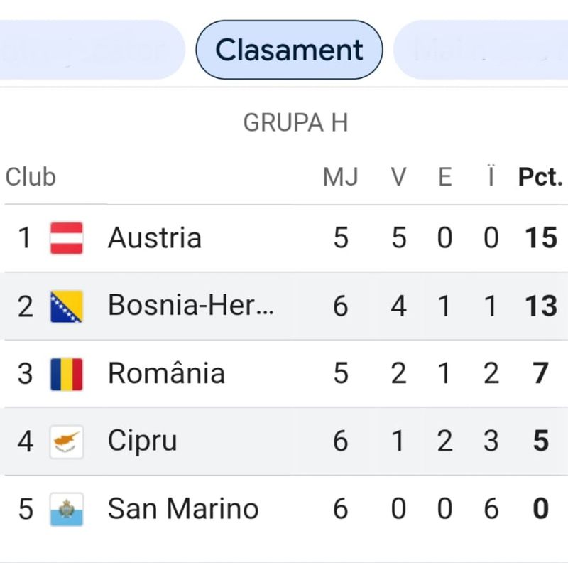 România se află pe locul trei cu 7 puncte și este obligată să câștige meciul cu Austria de duminică de pe Arena Națională pentru a se apropia de plutonul fruntaș al grupei H.