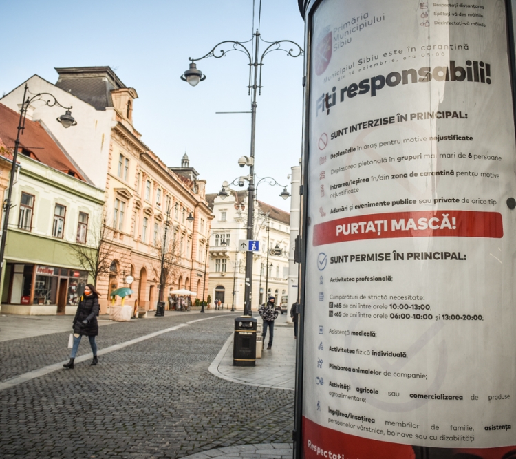 Municipiul Sibiu şi localităţile, Cisnădie, Tălmaciu şi Şelimbăr au intrat în carantină zonală din data de 16 noiembrie, iar Mediaş, Avrig şi Orlat din 23 noiembrie.