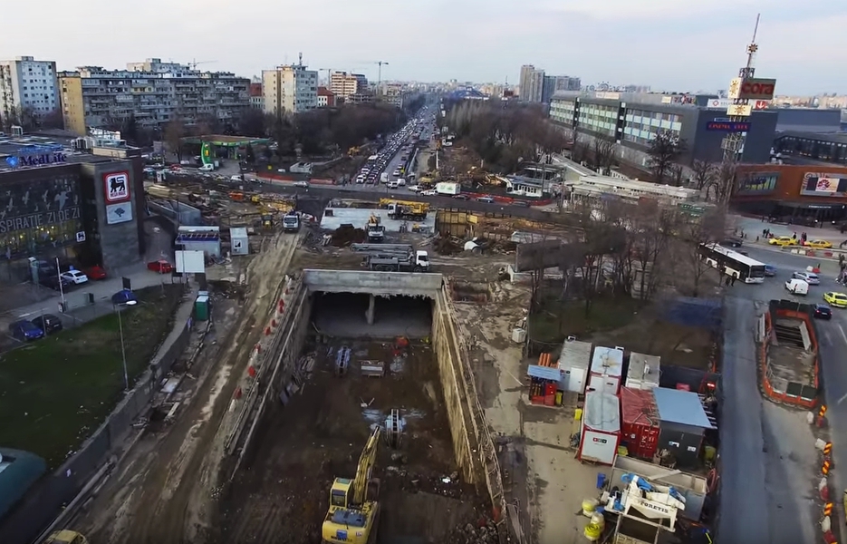 1 din 3 | Vezi cum arata lucrarile la pasajul rutier subteran de la Piata Sudului! Filmare cu drona deasupra santierului