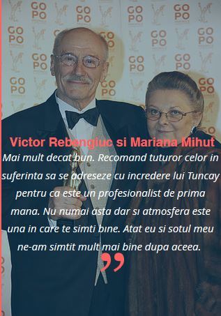 Victor Rebengiuc si Mariana Mihut s-au tratat de dureri reumatice la fostul sot al Andreei Marin. Turcul Tuncay s-a ocupat personal de cei doi, iar acestia i-au multumit prin intermediul unui mesaj pe pagina de internet al clincii infintate de acesta in Bucuresti.