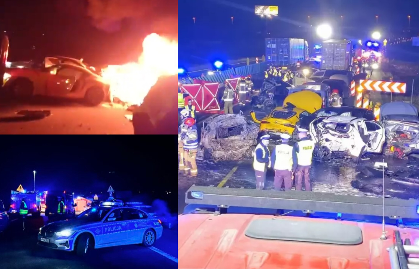 În accident au fost implicate 18 persoane, printre care și mai mulți copii care au fost răniți în urma impactului. În urma impactului a izbucnit și un incendiu, care a dus la moartea unor persoane, informează autoritățile poloneze. Mai multe maşini au luat foc după coliziune şi au fost complet carbonizate, notează presa din Polonia.