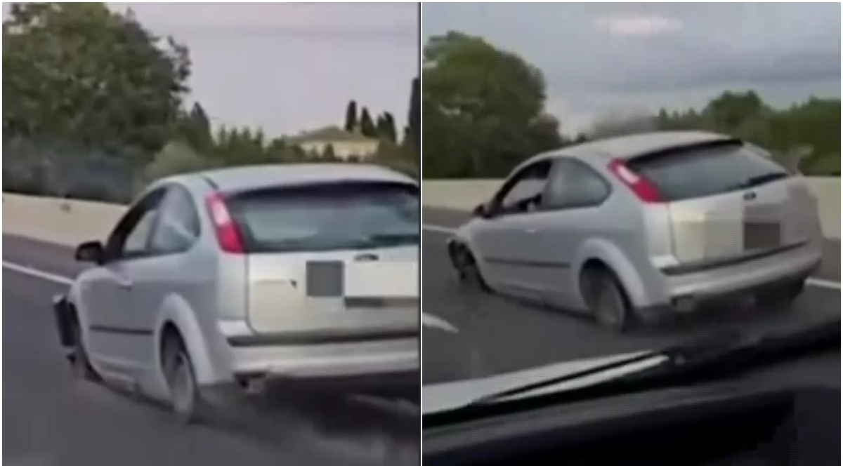 Mașina, lipsită de anvelopele din față, se deplasa pe jante, care zgâriau puternic asfaltul, iar scântei se puteau observa din spatele vehiculului. Acest comportament extrem de periculos a atras imediat atenția autorităților.