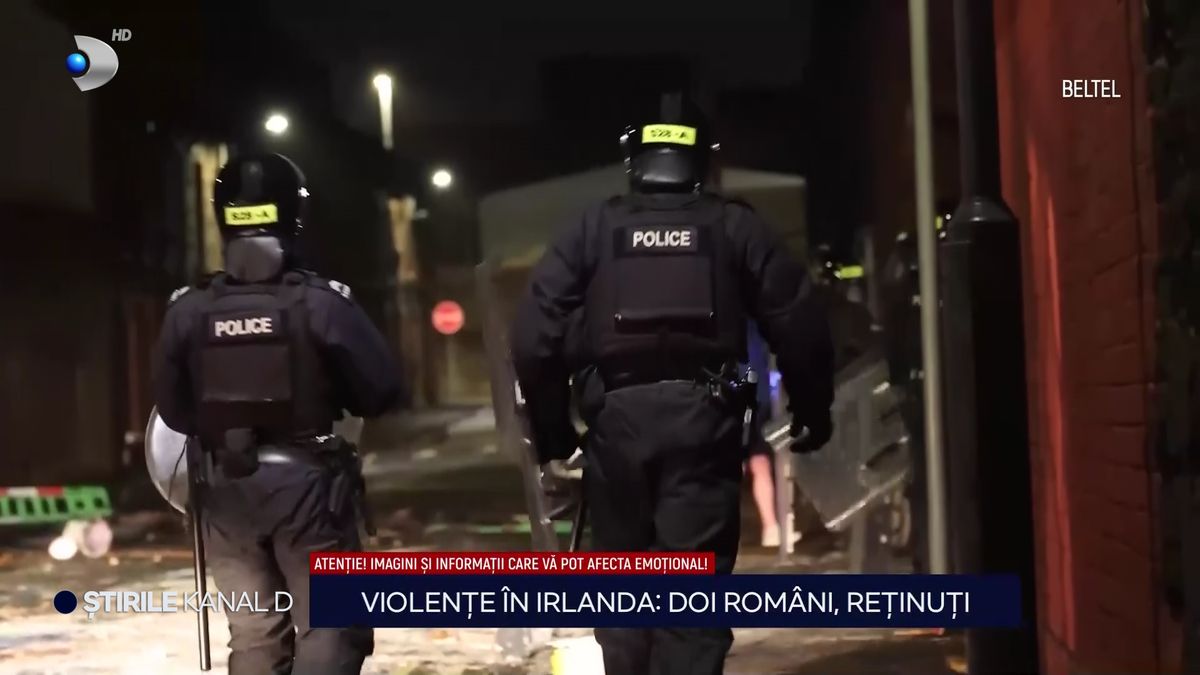 „Confruntări violente au avut loc, pentru a doua noaptea consecutiv, în orășelul nord-irlandez Ballymena. Sute de manifestanți, mulți dintre ei mascați, s-au ciocnit cu forțele de poliție, după agresiunea sexuală de care sunt acuzați doi adolescenți români. Aceștia au fost reținuți, a confirmat în urmă cu puțin timp Ministerul Afacerilor Externe”.