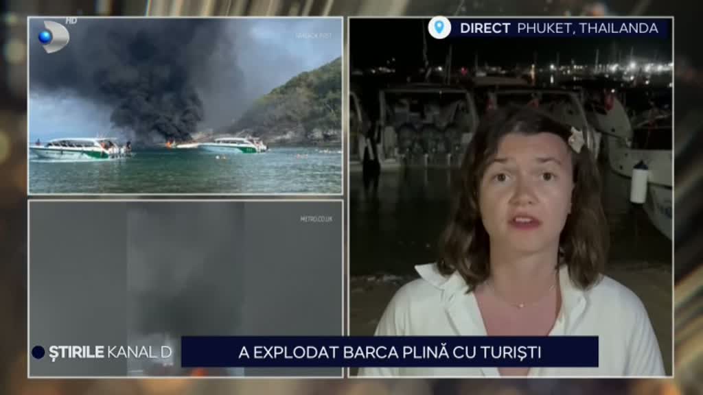 O barcă de viteză care plimba treizeci și șase de turiști între insulele din Phuket, Thailanda, a explodat. Șase persoane au fost grav rănite.