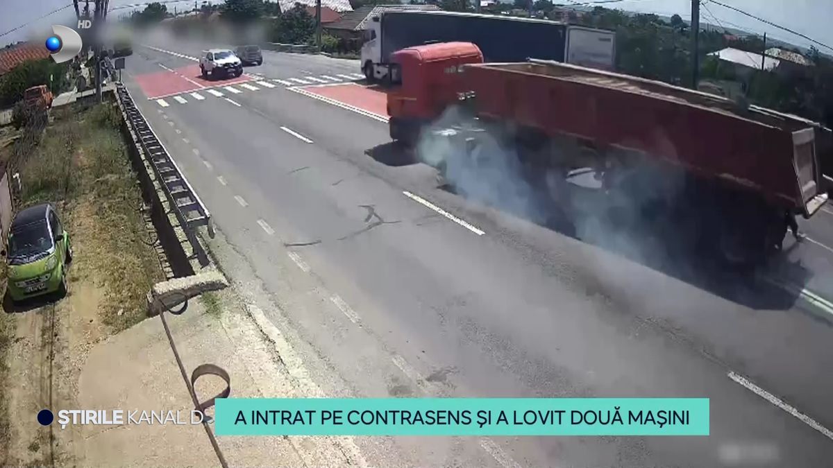 „Un impact uluitor a avut loc aseară în Dolj. Un TIR a încercat să depășească un altul și a lovit frontal două mașini de pe contrasens. În imagini se vede cum camioanele circulă la un moment dat în paralel. Șoferul a aflat pe banda doi pierde controlul volanului, depășește linia dublă continuă și intră pe sens opus, unde lovește o autoutilitară și o mașină oprită la trecerea de pietoni. Doar o minune a făcut ca toți cei implicați să scape cu viață. Șoferul camionului a fost testat cu aparatul alcool test, rezultatul fiind zero”, a spus Cristina Dorobanțu.