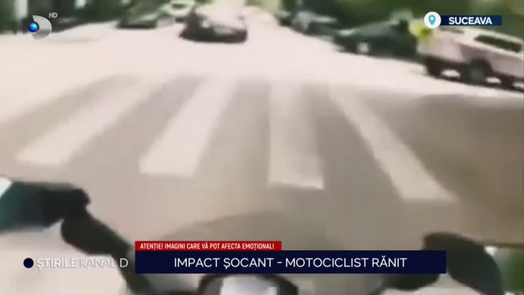 „Impactul dintre o motocicletă și o mașină a fost filmat în Suceava. Vă avertizez urmează imagini care vă pot afecta emoțional.