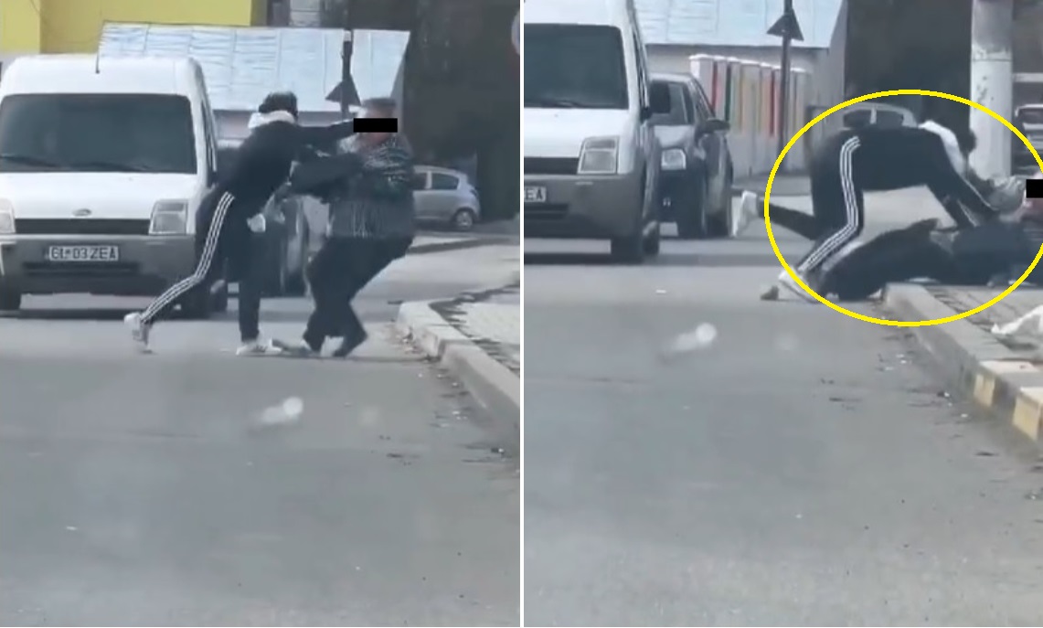 Două mămici s-au bătut în plină stradă, la Tecuci, după ce una dintre ele a împărțit bomboane mai multor copii.