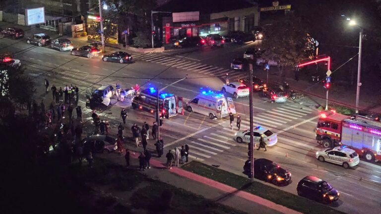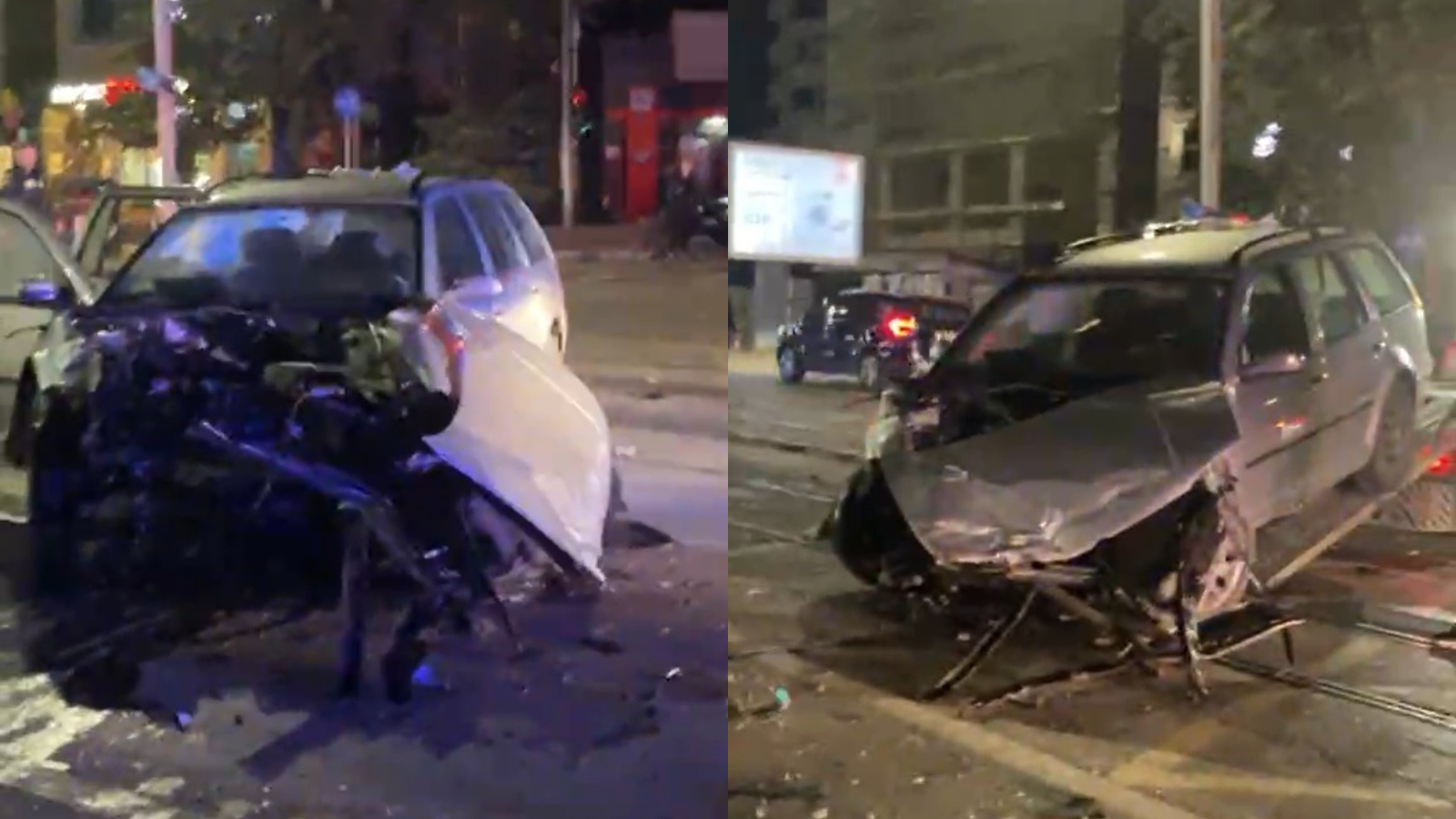 În urma impactului, mașina condusă de șoferul de 19 ani a ricoșat și a fost proiectată pe trotuar, unde a lovit un bărbat de 26 de ani și două tinere de 19, respectiv