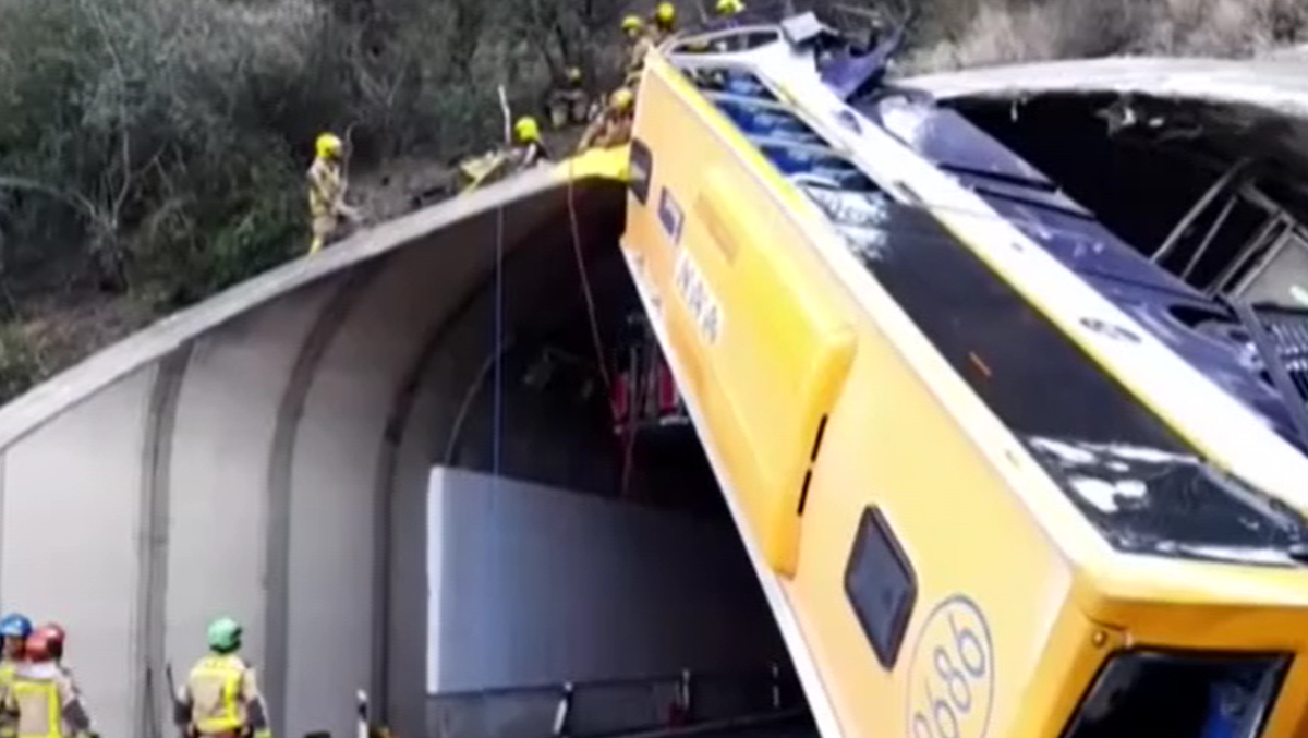 1 din 2 | VIDEO Accident cumplit în Spania. Un autocar plin cu muncitori s-a răsturnat la intrarea într-un tunel
