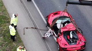 Mașina Ferrari, distrusă complet