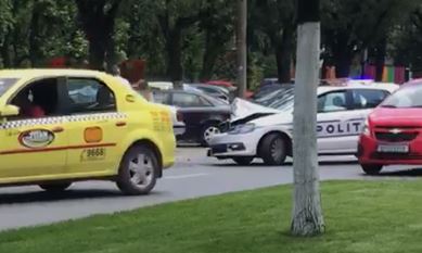 Un echipaj de poliție a fost implicat într-un accident în Capitală.