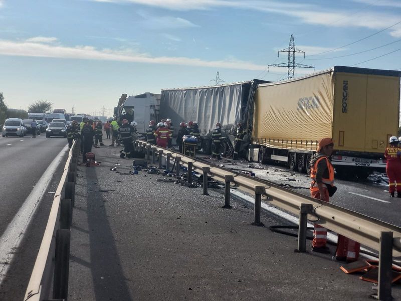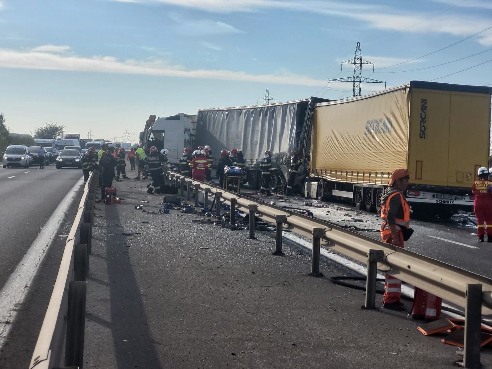 Din primele informații, în urma accidentului, două persoane ar fi decedat. Unul dintre conducătorii de TIR nu ar fi păstrat distanța, ar fi intrat în coliziune cu autoturismul, care ar fi ricoșat pe banda de urgență și a fost împins de un alt șofer.