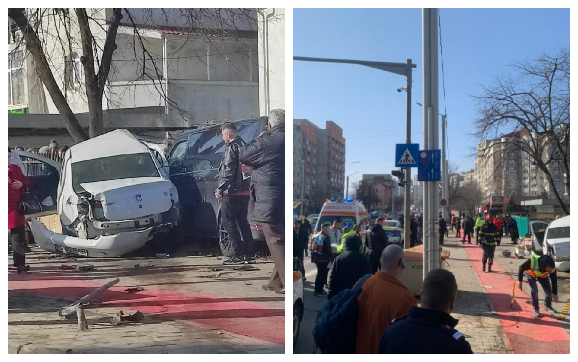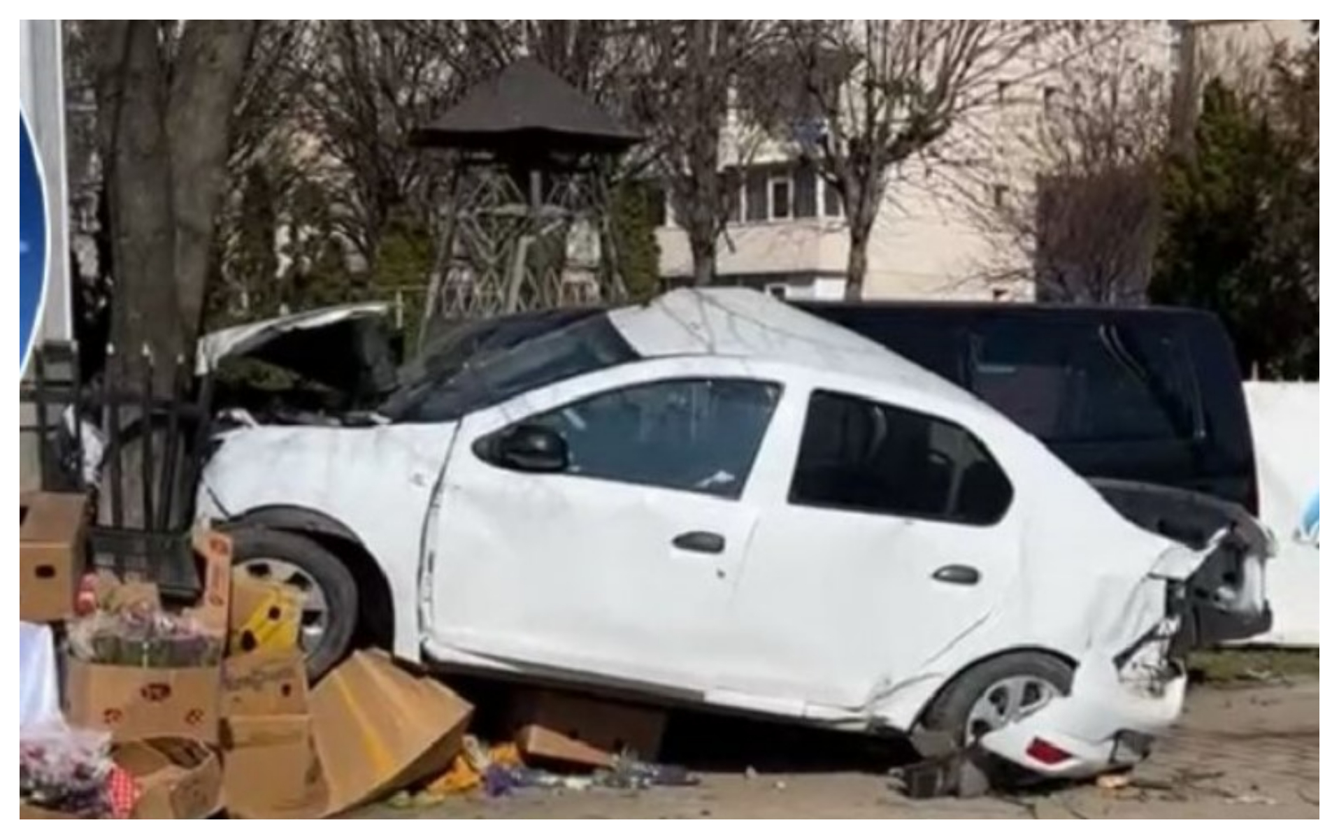 Imaginile cu accidentul au fost surprinse de camerele de supraveghere din zonă. Din păcate, două persoane au fost rănite, cei care vindeau flori reușind să se ferească la timp.