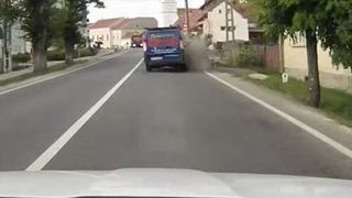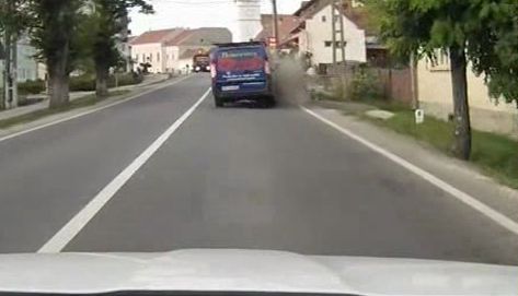 Un sofer care conducea o duba a lovit din plin o caruta, trasa de un cal, pe o sosea din din Romania. Barbatul pur si simplu a spulberat caruta care era oprita pe marginea benzii de drum, iar din imagine se poate observa cum calul se zbate sa se ridice. Din fericire, nimeni nu a fost lovit, doar caruta a fost facuta praf.
