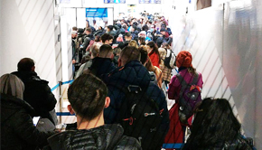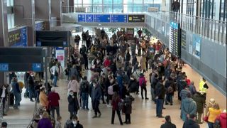 Terminalul de sosiri s-a blocat cu peste 1.000 de pasageri care au așteptat înghesuiți precum sardinele!
