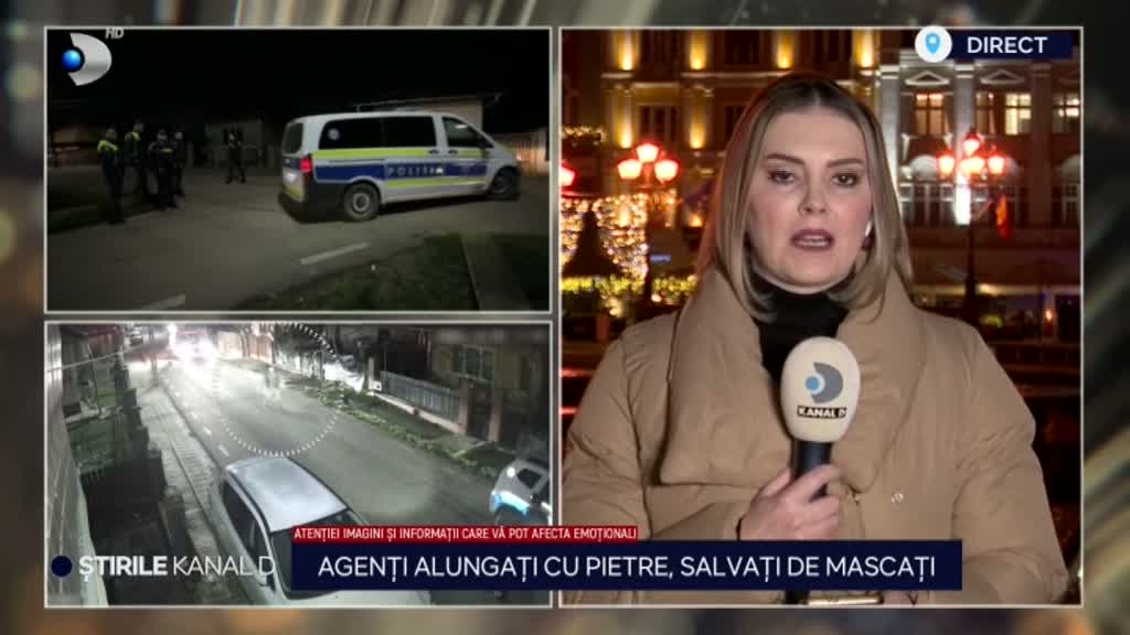 1 din 2 | Agenți alungați cu pietre, salvați de mascați