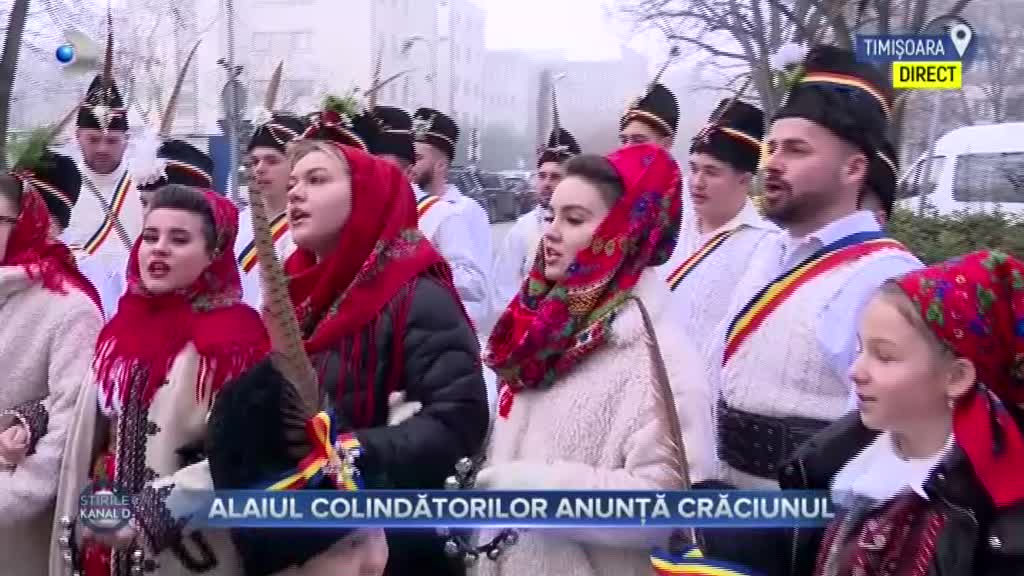 „Peste 200 de colindători din județul Timiș sunt prezenți la această oră în centrul orașului Timișoara pentru a celebra sărbătoarea Crăciunului. Acolo se află și colega mea, Iulia Dumitrașcu. Bună ziua, Iulia”, a transmis Cristina Dorobanțu, prezentatoarea Știrilor Kanal D.