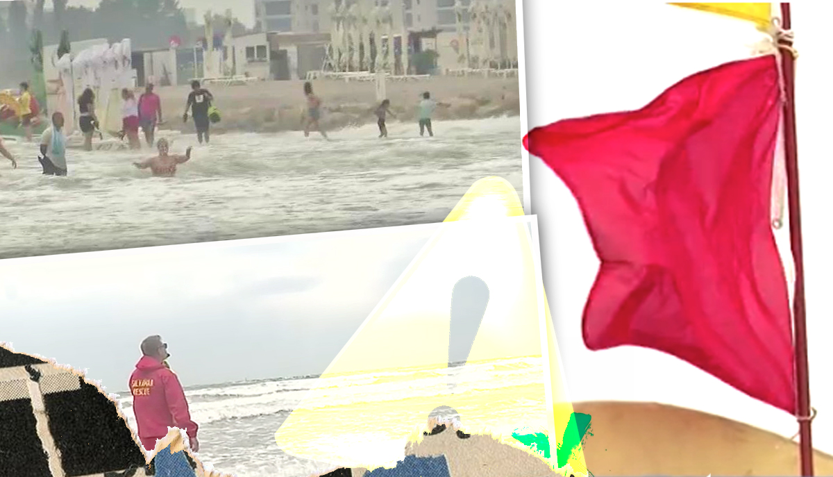 1 din 2 | VIDEO- Alertă pe litoral. Turiști nepăsători. Oamenii ignoră steagul roșu și riscă șă își piardă viața