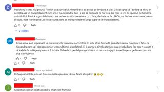 "Patrick a mai avut și probabil va mai avea fete frumoase ca Teodora. El este atras de inedit, probabil n-a mai cunoscut o fată ca Alexandra care sa-l iubească sincer, necondiționat si unilateral. Pentru a fi fericita ei îi ajunge o simplă atingere sau o vorbă bună (pe care n-a auzit-o niciodată de la Gagea)", a scris altcineva.