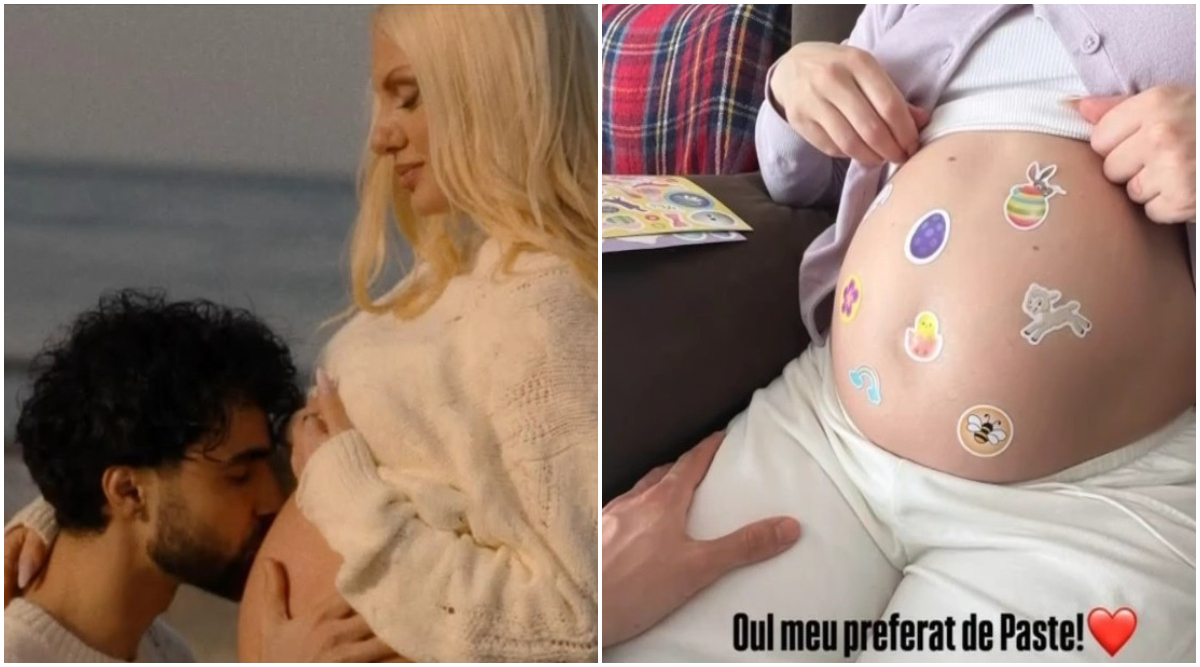 Vedeta a postat pe rețelele sociale o serie de fotografii în care își arată burtica decorată ca un ou de Paște, însoțită de un zâmbet larg care îi luminează chipul.