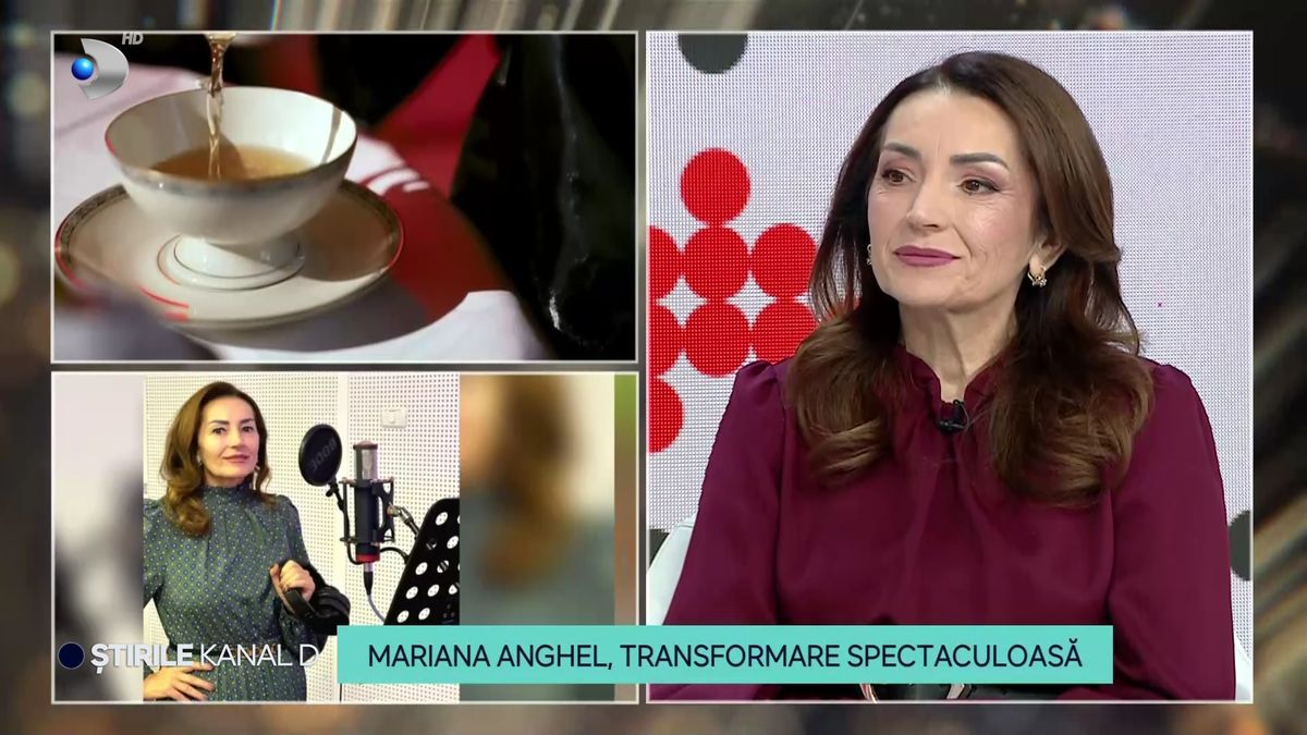 „Mariana Anghel este una dintre cele mai îndrăgite artiste de muzică populară de la noi. Extrem de carismatică și mereu cu zâmbetul pe buze, Mariana Anghel a trecut printr-o transformare uluitoare, iar astăzi arată și se simte senzațional. Am invitat-o în platoul Știrilor Kanal D pentru a ne povesti despre proiectele pe care le are și pentru a ne dezvălui puțin din secretele sale”.
