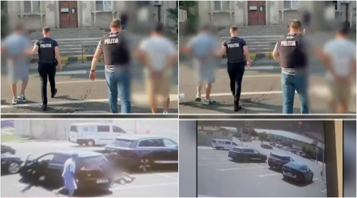 „Agresorii din Bacău, care au încercat să răpească o tânără din parcarea unui supermarket, au fost prinși la scurt timp după accident, iar astăzi au ajuns în fața instanței”.
