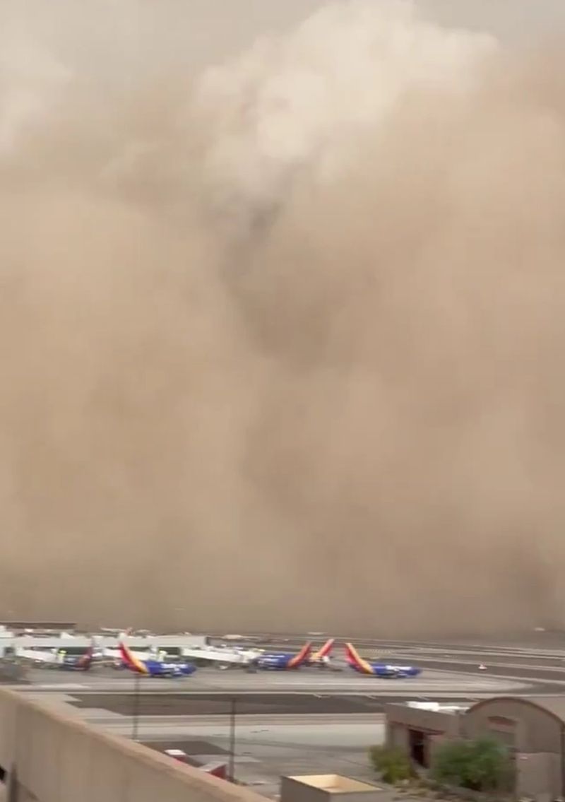 Timp de aproximativ o oră, aeroportul Internaţional Phoenix Sky Harbor a fost închis, împiedicând orice avion să decoleze sau să aterizeze, deoarece norul de praf părea gata să înghită totul.