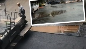 O altă zonă în care muncitorii s-au grăbit şi au asfaltat pe ploaie.