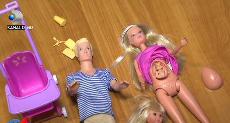 "Se da la o parte. Uitati, este aplicata pe papusa. Aici e burtica si trage de ea, se da la o parte. Da, se vand! si e ceva neobisnuit, ca la barbie nu gasesti gravida.", spun cei care o vand.