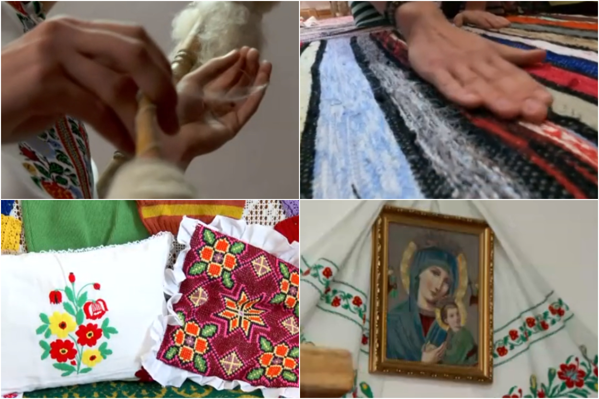 - Am realizat preșuri, preșuri din cârpe, cum le spunem noi, fote... Un macat oltenesc, țesut din lână, acum am pus prosoape-artizanat, pentru cumnați de mână, pentru nuntă, că la noi se dă la nuntă așa ceva", a declarat Andrei Cezar.
