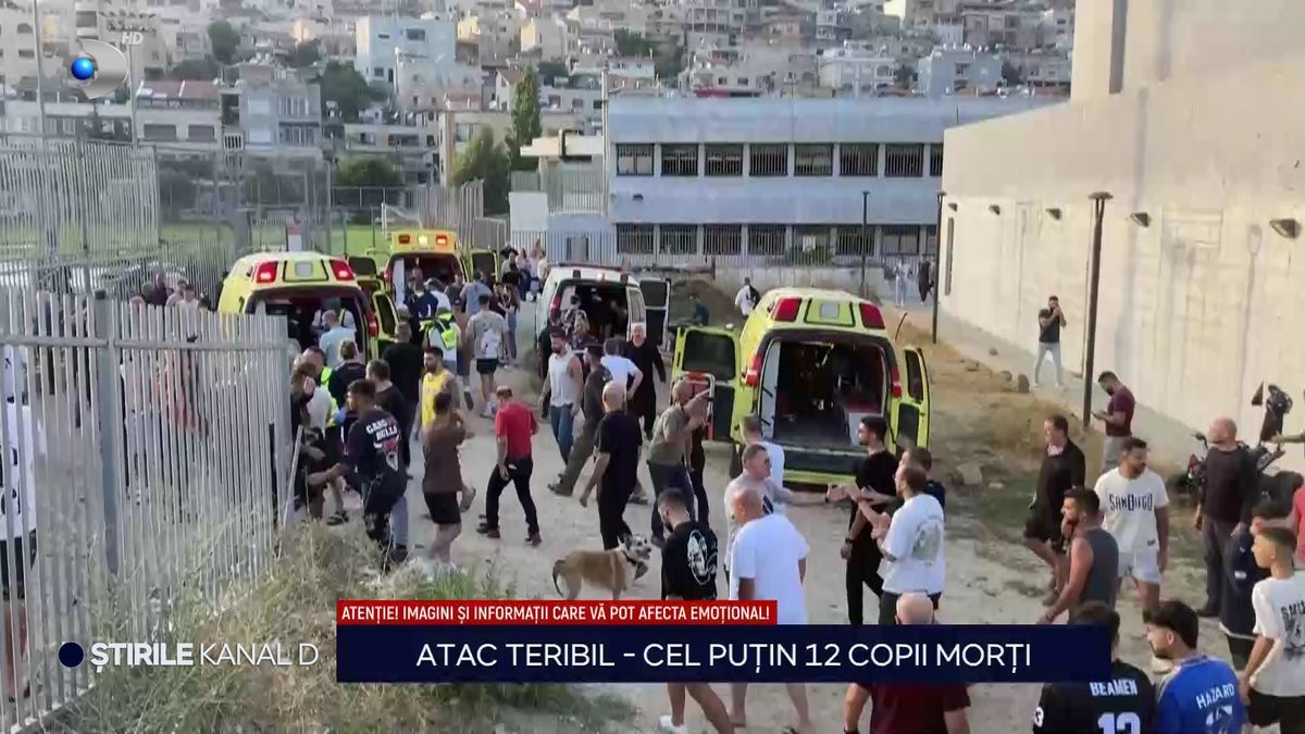 „Cel puțin 12 copii au fost uciși după atacul cu rachetă asupra unui teren de fotbal. Israelul arată cu degetul spre gruparea Hezbollah și deja a lovit mai multe obiective militare ale acesteia în nordul Libanului. Reprezentanții grupării neagă posibilitatea implicării în teribilul atac. Atenție, urmează imagini cu un puternic impact emoțional”, a spus Cristian Sabbagh.