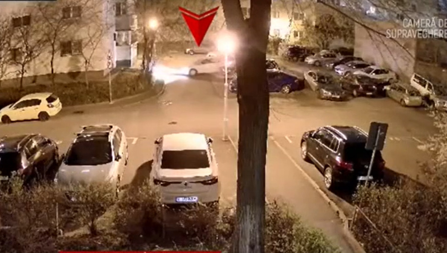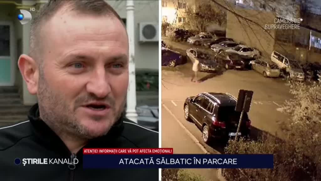 O cameră de supraveghere l-a surprins pe individ cum se plimbă bezmetic prin parcare. A pândit victima până a parcat mașina, s-a mai plimbat preț de trei minute și a sărit la atac.