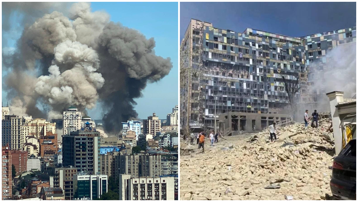 Jurnaliștii din Kiev au prezentat coloane de fum ridicându-se după impactul rachetelor Rusiei în centrul capitalei din Ucraina.