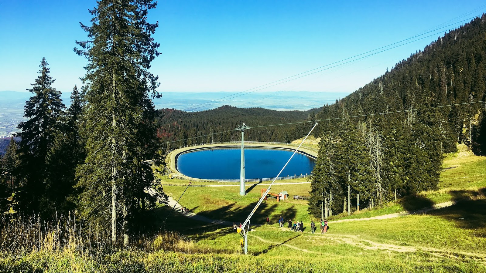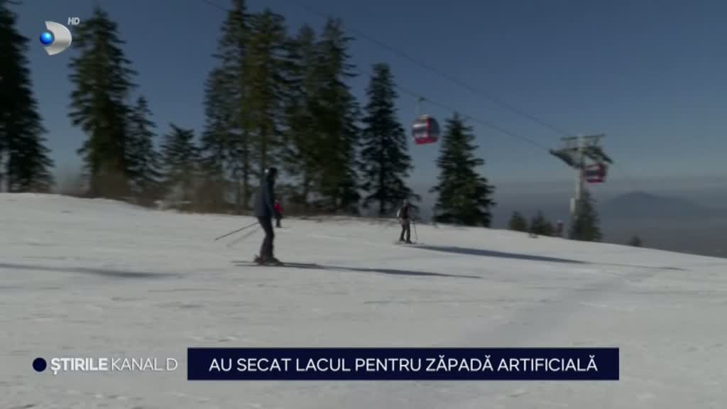 Un lac din masivul Postăvaru care alimentează tunurile de zăpadă artificială aproape că a secat.