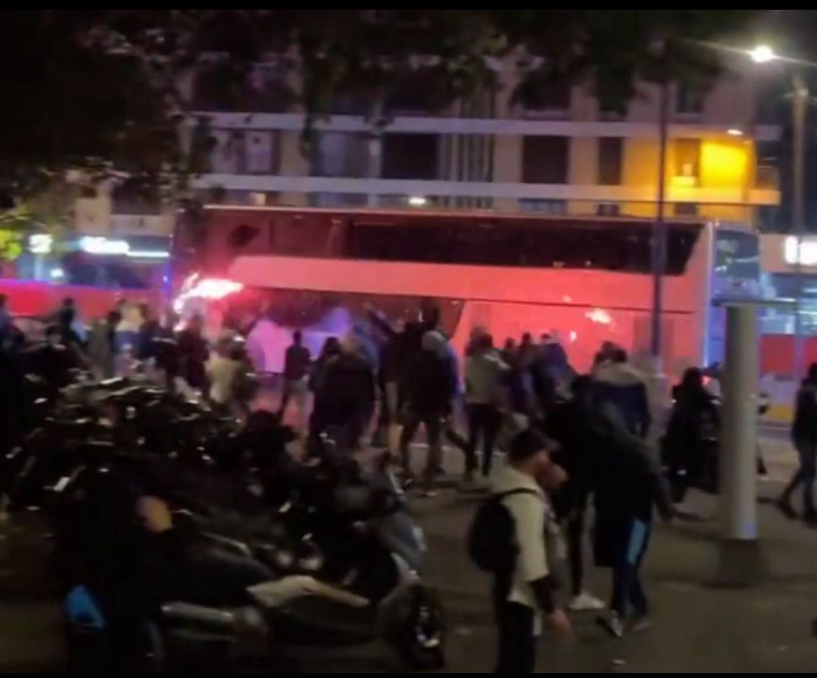 3 din 3 | Autocarul lor a fost lovit cu pietre în drum spre Stadionul Velodrome, spărgând geamurile