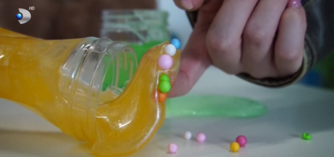 „Acest slime, pe care l-am cumpărat dintr-un magazin de jucării din Capitală, ne-a fost vândut exact așa cum îl vedeți, fără o cutie, fără vreun ambalaj sau fără ca măcar să aibă o etichetă care să ne arate dacă este omologat, ce substanțe conține sau de la ce vârstă poate fi folosit”,
