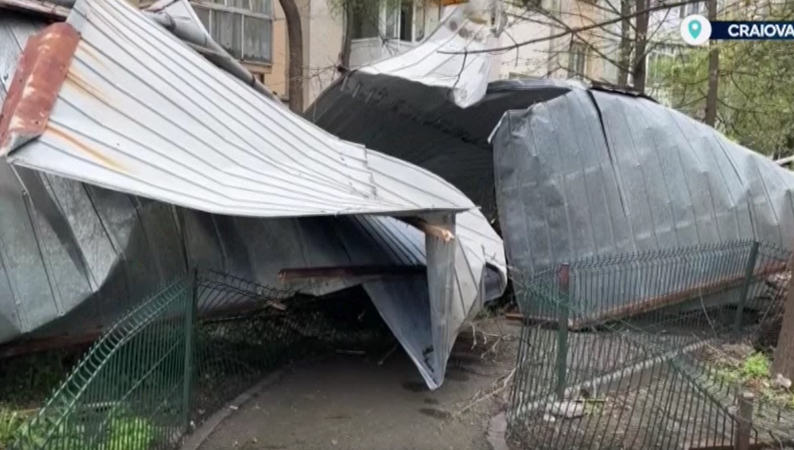 Vântul puternic a făcut probleme mari în Oltenia. La Craiova rafalele de vânt au smuls tabla de pe acoperișul unui bloc și au aruncat-o peste un gard. Doar norocul a făcut ca oamenii să nu treacă în acel moment pe stradă. „E pericol că oricum se circulă. Nimeni nu prea își face probleme că nu este în situația respectivă. Numai când ești în situația respectivă, atunci zici AU.”