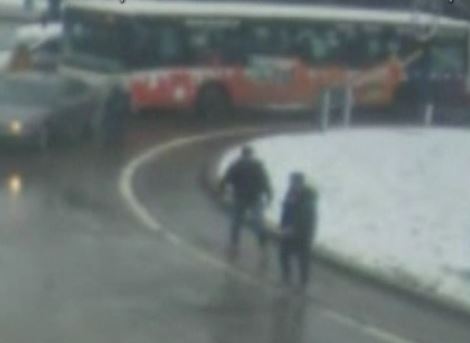 În imaginile surprinse de camere de supraveghere din trafic se vede cum, la un moment dat, mașina se oprește în fața autobuzului și tânărul de la volan coboară nervos. Martorii spun că ar fi început să lovească în ușile autobuzului cu palmele și picioarele.