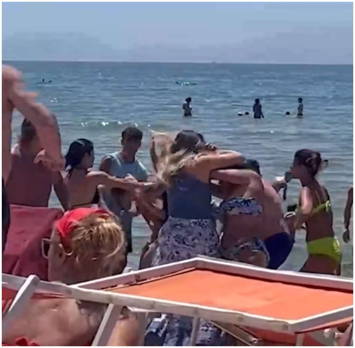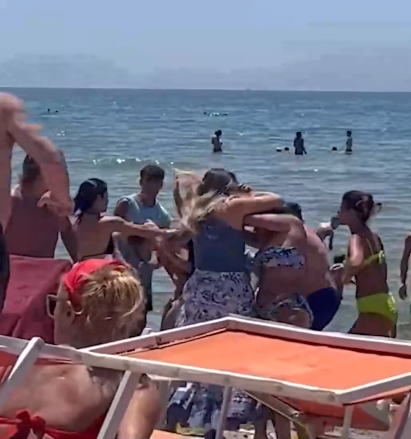 Femeile și-au aruncat palme și pumni în încercarea de a pune mâna pe un șezlong cât mai aproape de mare, potrivit presei italiene.