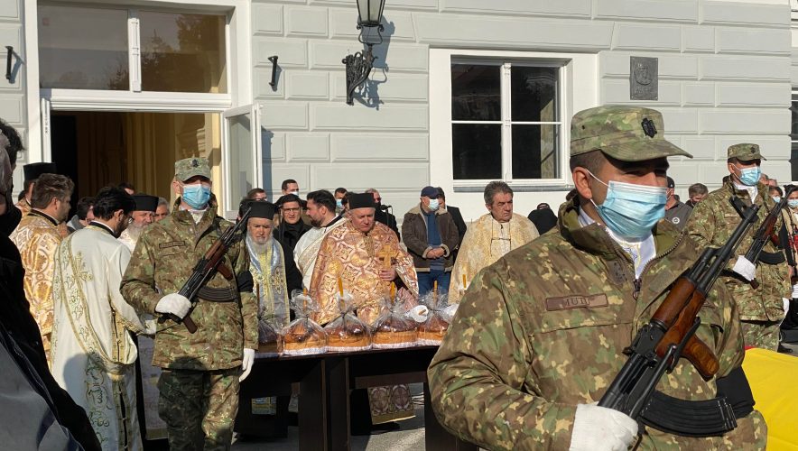 Slujba religioasă a fost oficiată de un sobor de 8 preoți și diaconi, în frunte cu arhiepiscopul Aradului.